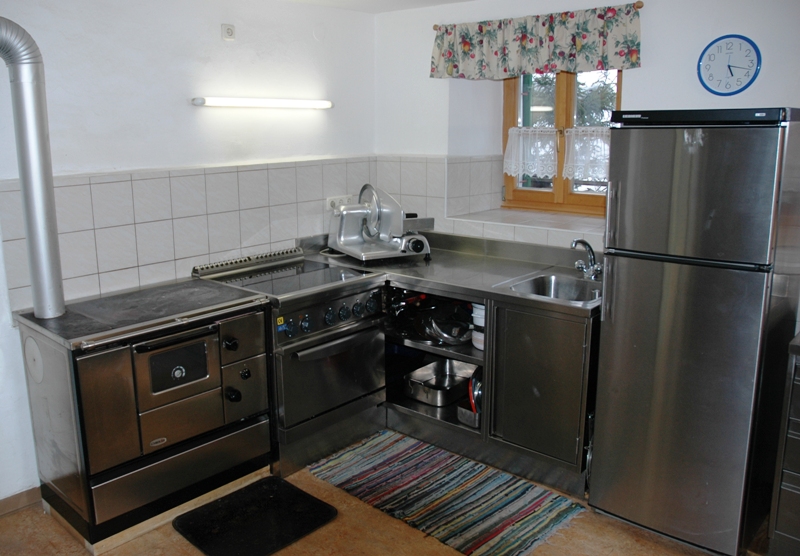 1 Selbstversorgerküche mit E-Herd und Holzherd in Paterre (großer Kühlschrank und komplettem Geschirr )