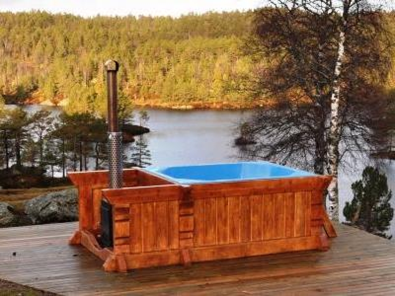 Eine Unterkunft typisch für Norwegen; am See gelegen, mit Kanus, Badesteg und Badeinsel