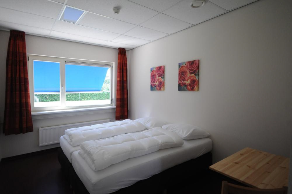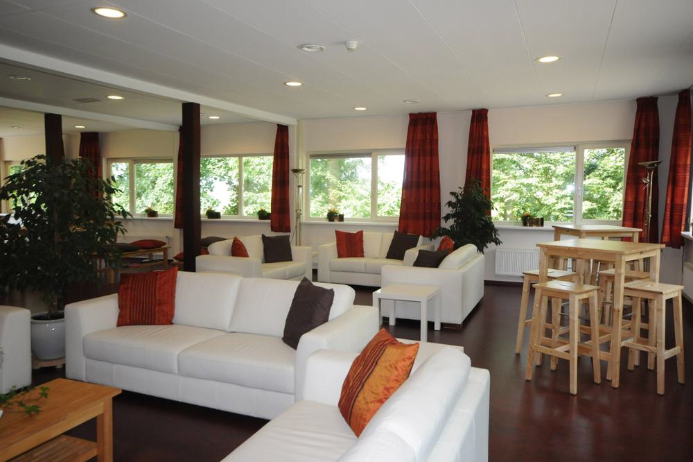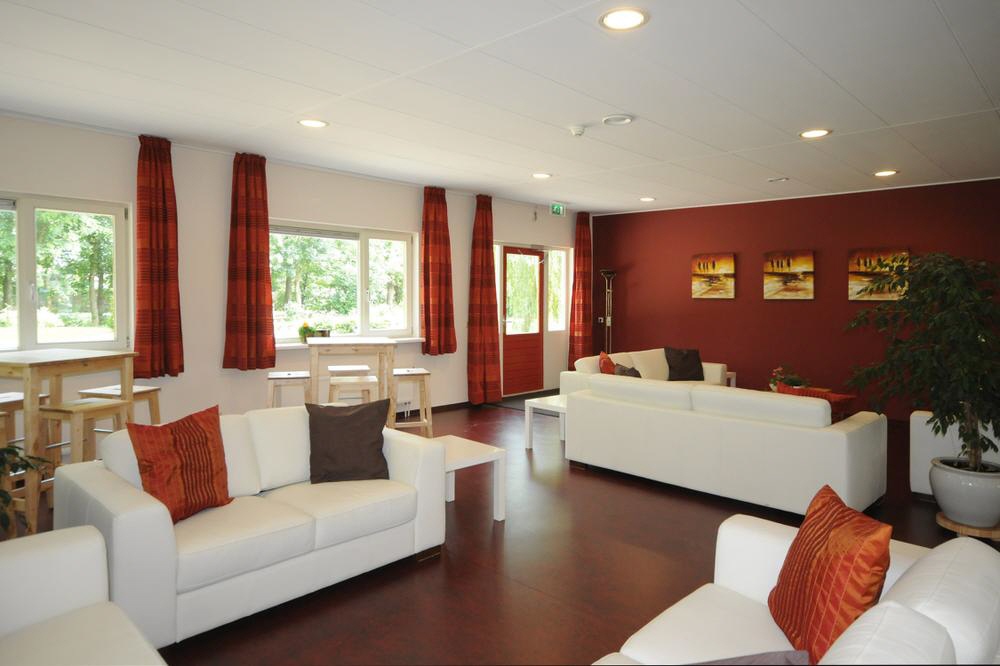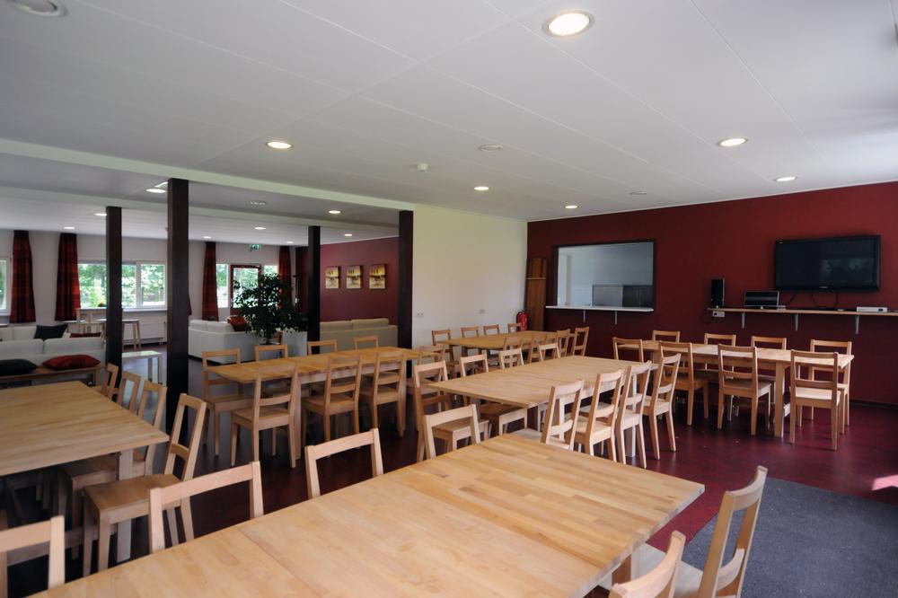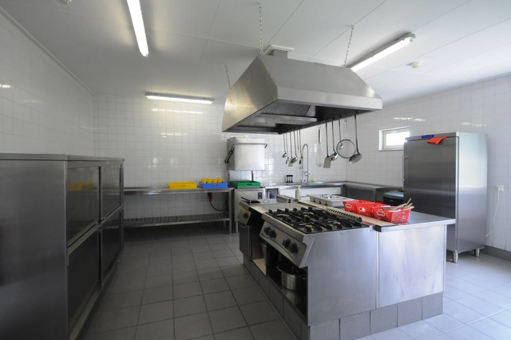 Das erste, was im Gruppenhaus auffällt, ist der ungewöhnlich breite Flur, absolut untypisch für niederländische Verhältnisse! Es gibt vier Doppelzimmer mit Einzelbetten und jeweils eigenem Bad (Dusche, WC & Waschbecken), sowie weitere fünf 4-Bettzimmer (Einzelbetten) und zwei größere Schlafzimmer (8-Bett) mit jeweils vier Etagenbetten. Für pflegebedürftige Personen, die auf ein Pflegebett angewiesen sind, können diese über einen regionalen Anbieter (kostenpflichtige) geordert werden, inklusive natürlich Bring- & Abholdienst. Weiterhin stehen behinderten Mitmenschen insgesamt zwei behindertengerechte Bäder zur Verfügung, ausgestattet jeweils mit ebenerdiger Dusche, Duschstuhl, normalen Waschbecken und einem WC mit entsprechenden Haltebügeln. (Laut uns vorliegenden Informationen sind deshalb auch „nur“ max. vier Rollstuhlfahrer angegeben; es finden aber auch weitere Rollstuhlfahrer Platz in dieser Unterkunft. Des Weiteren sind noch zwei Gruppenbäder vorhanden, jeweils mit einer abschl. Duschkabine, zwei Toiletten und einem Waschtisch mit drei Waschbecken. Der helle und freundliche Ess-/Aufenthaltsraum (ca. 130 qm), besticht in erster Hinsicht durch sein recht neuwertiges & modernes Mobiliar: eine weiße & sehr gemütliche Couchlandschaft aus pflegeleichtem Leder, sowie auch der großzügig bemessene Essbereich mit ausreichend Tischen/Stühlen. Ferner befinden sich in diesem Raum noch mehrere Stehtische, als auch einen Kicker, dass typisch niederländische Sjolbak, sowie einen Flachbildfernseher und eine kleine HiFi-Anlage. Die SV-Küche (ca. 36 qm) ist professionell und großartig ausgestattet und wartet hier sogar mit einer Kochinsel auf, in dem sich der Gasherd (4flg.) und eine Friteuse befindet. Weiterhin gibt es einen Geschirrspüler, einen Backofen, sowie einen Kühlschrank und eine Gefriertruhe, als natürlich auch die Mikrowelle, einen Tea-Maker und mehrere Kaffeemaschinen.