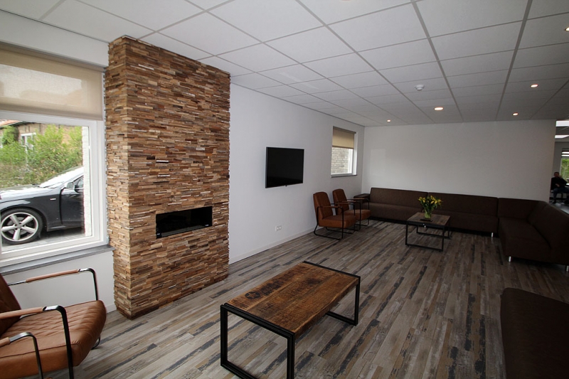 Die hochmoderne und sehr komfortable Küche ist ausgestattet (u.a.) mit einem Gasherd (6flg.) und Backofen, sowie mit Kühlschrank und einem separaten Gefrierschrank, einer Spülmaschine, Wasserkocher und Kaffeemaschine. Der „Eyecatcher“ im Speiseraum, neben dem Geschirrschrank, der als Tresor daherkommt, ist aber sicherlich die Kücheninsel, die sich sowohl als Arbeitsfläche, als auch als Theke und / oder als Anrichte für (z. B.) ein Buffet eignet. Weiter auffallend im Raum sind die Tische mit der Bestuhlung, beides in ungewöhnlicher Optik und ultramodern. Etwas separiert findet sich ein gemütlicher Wohnraum mit modernen Sitzmöbeln und Blick auf die vordere Terrasse und den Spielgeräten; die Kids somit immer sicher im Blick … In einer schmalen und hell gehaltenen Klinkerwand, befindet sich der Gaskamin, der abends sicherlich für eine heimelige und gemütliche Stimmung sorgt.