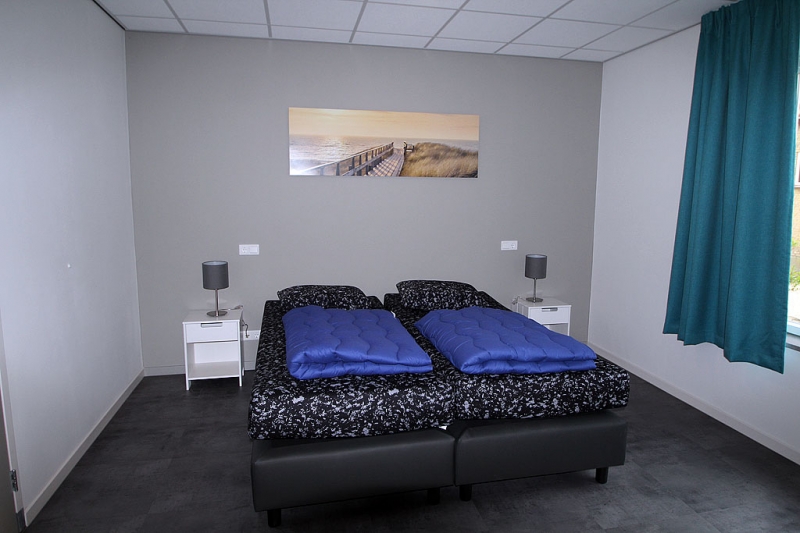 Im Erdgeschoß befinden sich insgesamt sechs Schlafzimmer: 5x 2-Bettzimmer, teilweise mit Doppelbett oder Einzelbetten und ein 4-Bettzimmer. Alle Schlafzimmer haben ein eigenes Badezimmer, ein weiteres separates Bad befindet sich im Eingangsbereich des Gruppenhauses. (In einem der Schlafzimmer sind auch zwei „Notbetten“ zu finden, beide 160cm x 80cm und natürlich mobil. So dass diese Betten dann auch in andere Zimmer aufgestellt werden können.) Die weiteren Übernachtungsmöglichkeiten befinden sich im Dachgeschoß der Unterkunft: 2x 2-Bettzimmer und 1x 4-Bettzimmer, auch hier wieder jeweils mit eigenem Bad. Drei weitere Personen können in einem Einzel- & einem Doppelbett nächtigen, die sich beide unter der Dachschräge im oberen Flur befinden und durch Zuziehen eines schweren (blickdichten) Vorhanges wird die „Privatsphäre“ gewahrt. (Speziell, aber in den Niederlanden eben auch nicht ungewöhnlich …)