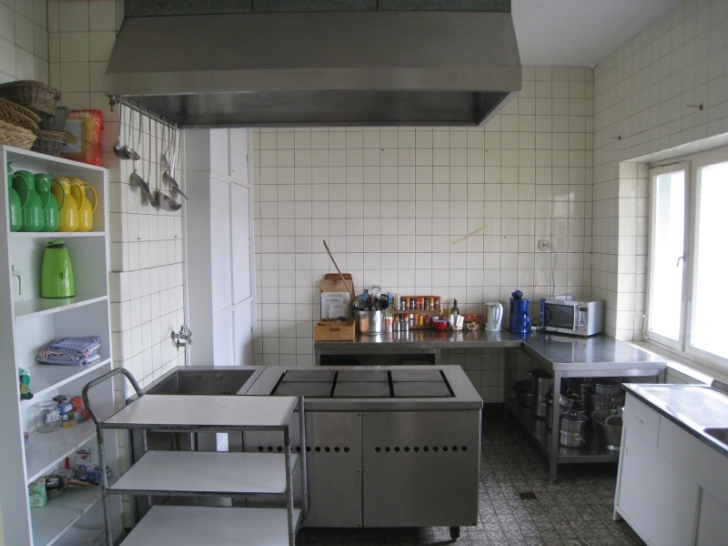 Gut ausgestattete Selbstversorgerküche mit Kühlschrank, großem Herd, Töpfen, Pfannen, Thermoskannen, Spülmaschine. (Komplette Inventarliste auf Anfrage.)