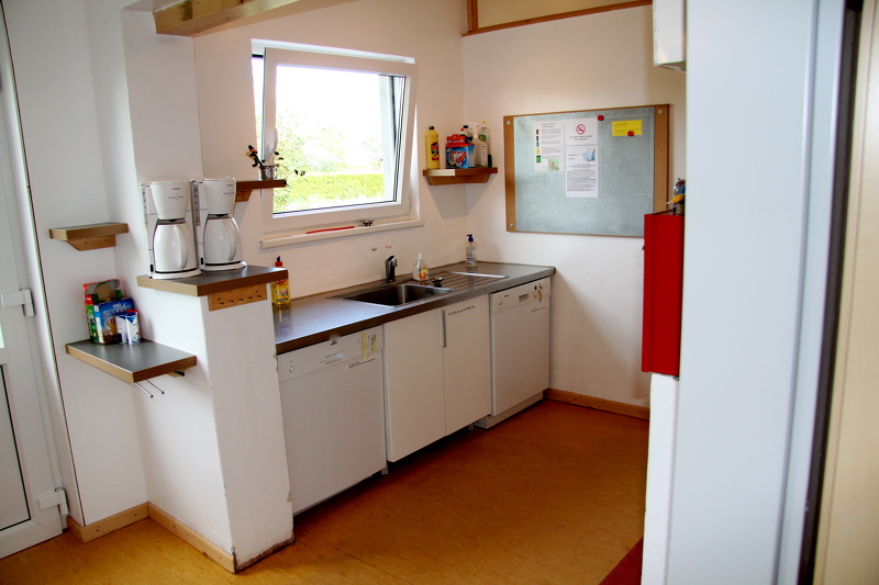 gut ausgestattete Küche mit unter anderem 2 Spülmaschinen, Mikrowelle, 2 Kaffeemaschinen, Herd mit 6 Platten, großer Backofen, Mixer, Toaster, Backzubehör, großer Vorratsschrank etc.