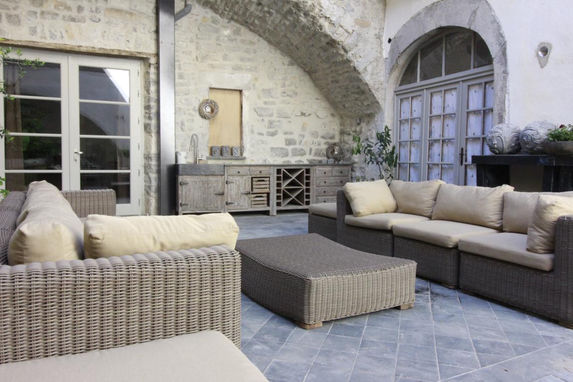 Der Eingang mit Natursteinen, die Gewölben, der Patio, die imposante Treppe, die Terrassen, die Kamine und die Deckendekorationen machen diese Unterkunft aus dem Jahre 1350 zu einer Augenweide.
