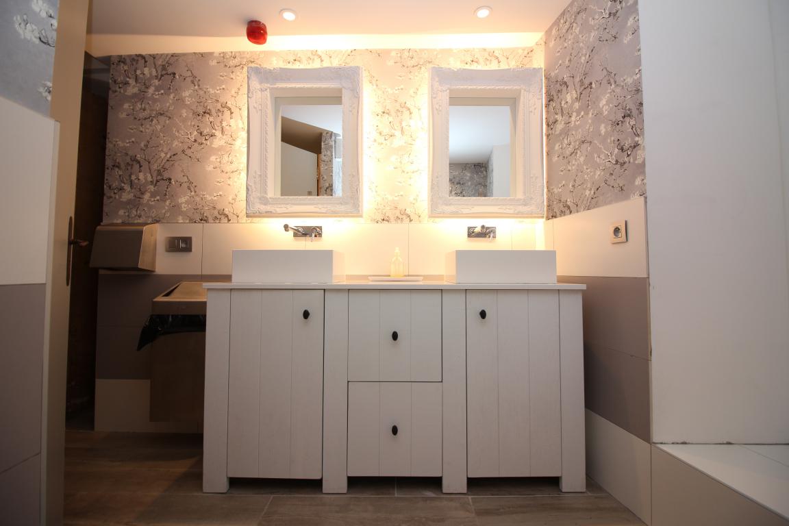 Die professionell eingerichtete Küche, ebenfalls im Erdgeschoss, ist das Herzstück. Dank eines großen Kühlschranks, einem
