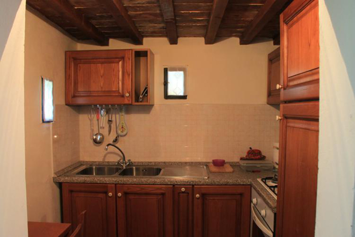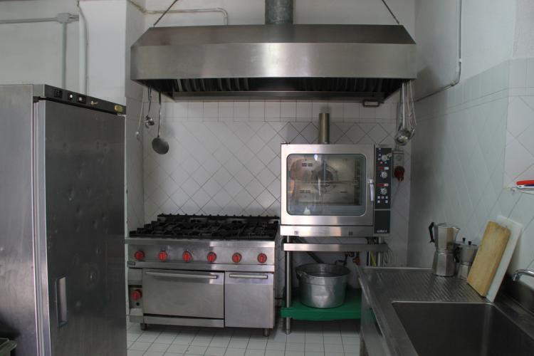 Die Küche des Hauses ist sehr gut ausgestattet. Es gibt einen 4-flammigen Gasherd mit Backofen, eine elektrische Schneidemaschine, einen großen Kühlschrank, eine Kühltruhe und eine Gastronomie-Geschirrspülmaschine. Töpfe, Pfannen und Kochutensilien sind für große Gruppen ausgelegt und ausreichend vorhanden. Das Gleiche gilt für Geschirr und Besteck.