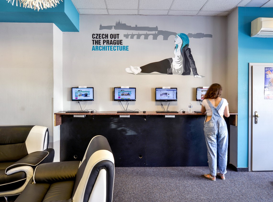 Unser Jugendhotel liegt im Prager Stadtviertel 7, nur rund 3 Kilometer Luftlinie von der Prager Altstadt entfernt. Mit öffentlichen Verkehrsmittel ist man in wenigen Minuten zum Beispiel an der Prager Burg oder in der Altstadt. Zur Unterkunft kommt man vom Bahnhof Hlavní Nádraží aus entweder mit der Straßenbahn Nr. 5 oder Nr. 12 in nördlicher Richtung nach Osadní.