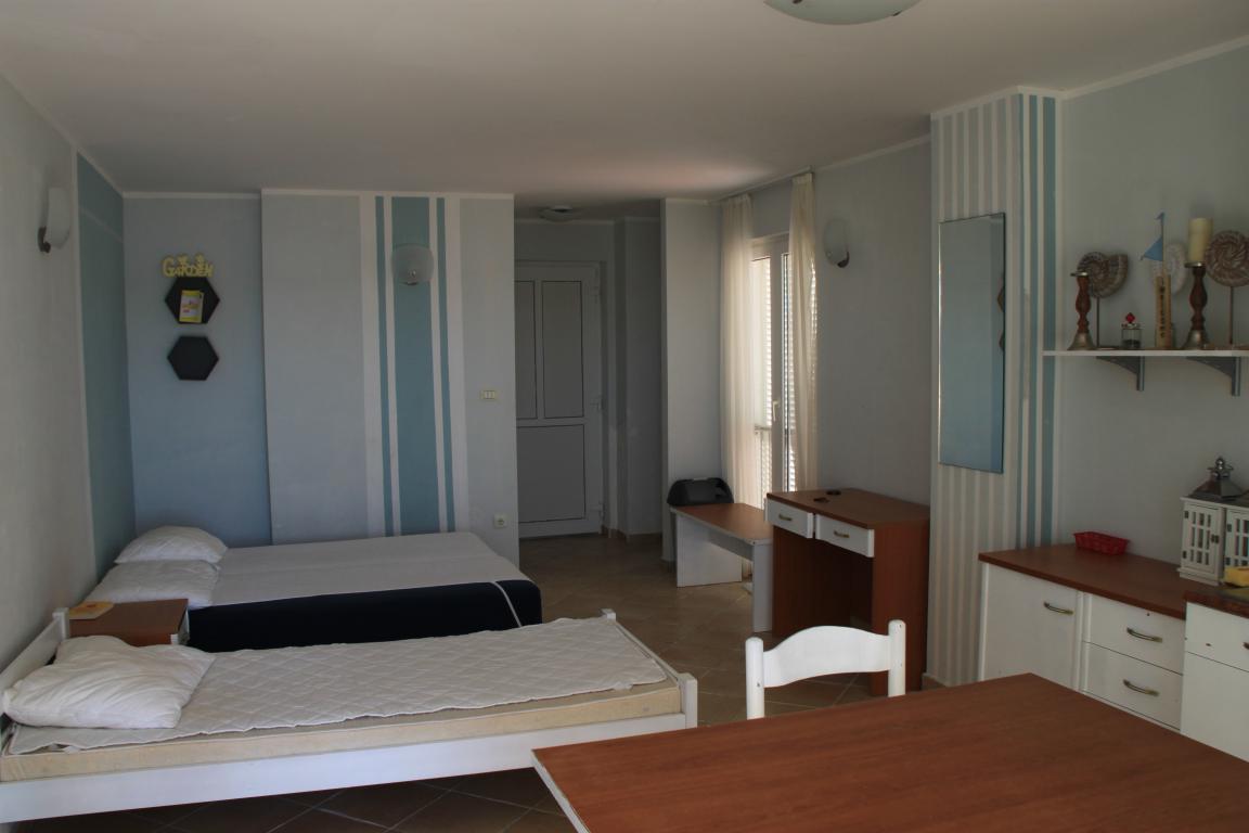 Unser Gruppenhaus liegt in unmittelbarer Strandlage. Das gesamte Haus besteht aus 2 Hausteilen: Haus A mit 28 Betten und Haus B mit 21 Betten, die in der Hochsaison zusammen vermietet werden. Die Unterbringung erfolgt in 2-6-Bettzimmern, alle mit Meerblick und Duschen und Toiletten auf den Zimmern. Eine typische Zimmeraufteilung ist = 1 franz. Bett und 1 Einzelbett.