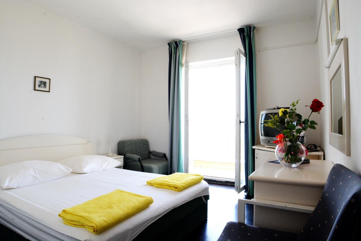In Kroatien sind franz. Betten sehr verbreitet. Eine typische Zimmeraufteilung ist = 1 franz. Bett und 1 Einzelbett. Unser Gruppenhaus besitzt den kroatischen 3-Sterne-Standart, wozu auch gehört, dass alle Zimmer mit Fernsehgeräten ausgestattet sind. Auf Wunsch können die Antennenkabel jedoch entfernt werden, so daß kein Fernsehempfang möglich ist.