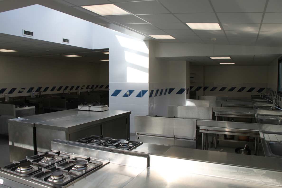 Im benachbarten Wirtschaftsgebäude befinden sich 12 Zweibett- und 2 Vierbettzimmer sowie im Speicher für ganz große Gruppen 3 Zweibett- und 1 Dreibettzimmer. Außerdem verfügen unseren Gruppen über die sehr gut ausgestattet Lehrküche mit mehreren Küchenzeilen (Geschirrspülmaschine, Kühlschrank, Heizluftofen, etc.). Die Großküche wird auch in den Ferien vom Haus genutzt, um die dauerhafte Essensauslieferung-/versorgung an Personen außer Haus zu gewährleisten.