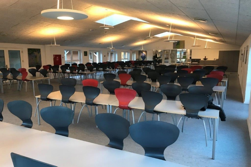 In dieser Efterschule stehen zahlreiche Aufenthaltsräume zur Verfügung. Alleine 6 Klassenräume zwischen 48 qm und 65 qm. 2 weitere Klassenräume mit je 66 qm, die durch eine Falttür getrennt sind und somit aber zu einem 132 qm großen Aufenthaltsraum zusammen gelegt werden können.