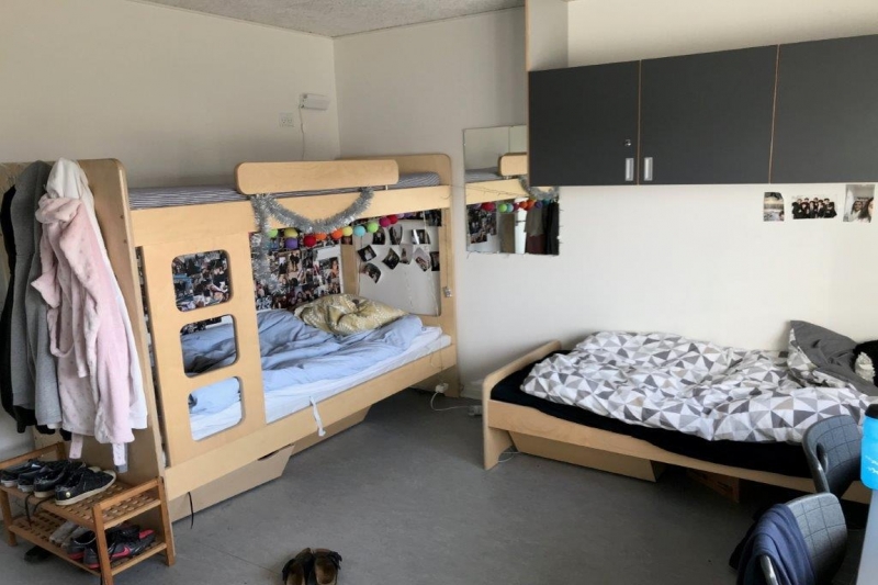 Alle Zimmer sind sehr gut ausgestattet. Es gibt jeweils einen Schrank, Regal, Tisch und Stuhl.