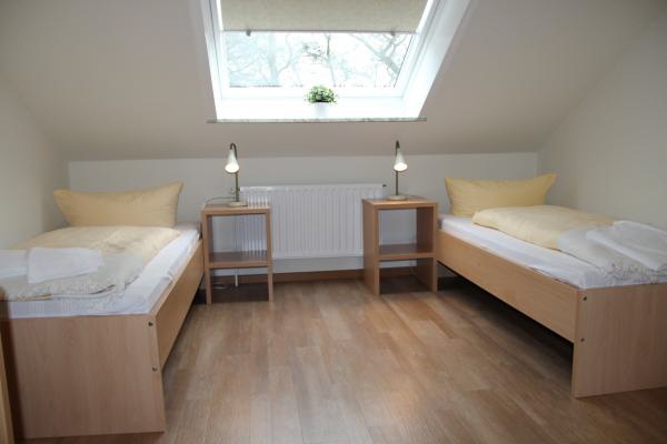 In unserem Kiefernhaus finden Sie Platz für 20 Personen, aufgeteilt auf zwei Etagen. Im Obergeschoss stehen fünf Zweibettzimmer und zwei Einzelzimmer zur Verfügung, im Erdgeschoss vier Doppelzimmer. Alle Zimmer sind mit einer Waschgelegenheit ausgestattet; die Dusch- und Toilettenräume sind den Zimmern zugeordnet und auf der jeweiligen Etage untergebracht. Ein Aufenthaltsraum mit TV steht Ihnen ebenfalls zur Verfügung. Im Erdgeschoss – mit einem separaten Eingang versehen – befinden sich drei Doppelzimmer mit eigener Dusche und eigenem Bad.