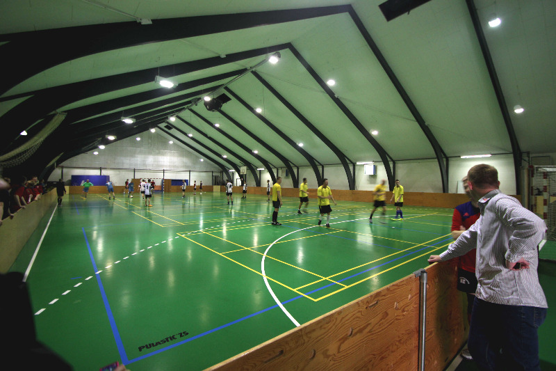 Da es sich bei diesem Gruppenhaus auch um ein Sportinternat handelt, gibt es selbstverständlich auch eine große 3-Fachsporthalle (3 Volleyballfelder) und einen großen Rasen-Sportplatz.