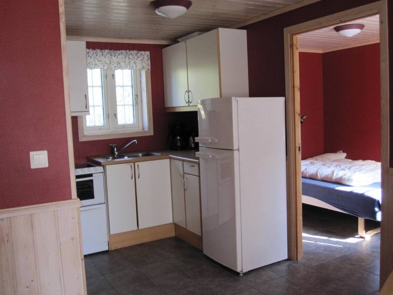 Beschreibung: Die 23 "Hütten" (ca. 52m²) sind schöne norwegische Sommerhäuser mit jeweils 2-3 Wohnungen. Die Wohnungen gehen über zwei Etagen. Im Erdgeschoß liegt das Wohnzimmer mit offener Küche und das Bad mit Dusche und WC. Im 1. Stock liegen zwei Schlafzimmer, eines mit Doppelbett und eines mit zwei Stockbetten. Die Küche ist komfortabel eingerichtet, mit Herd und Geschirrspüler. Das Wohnzimmer ist mit Satellitenfernsehen ausgestattet. Einige der Toiletten sind mit Behinderten-WC ausgestattet. Die Hütten sind etwa 300m vom Meer entfernt.