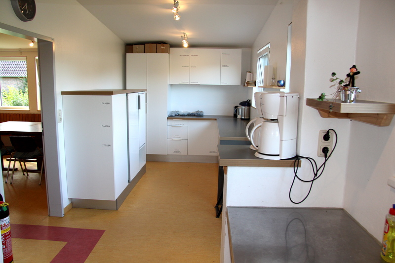 gut ausgestattete Küche mit unter anderem 2 Spülmaschinen, Mikrowelle, 2 Kaffeemaschinen, Herd mit 6 Platten, großer Backofen, Mixer, Toaster, Backzubehör, großer Vorratsschrank etc.