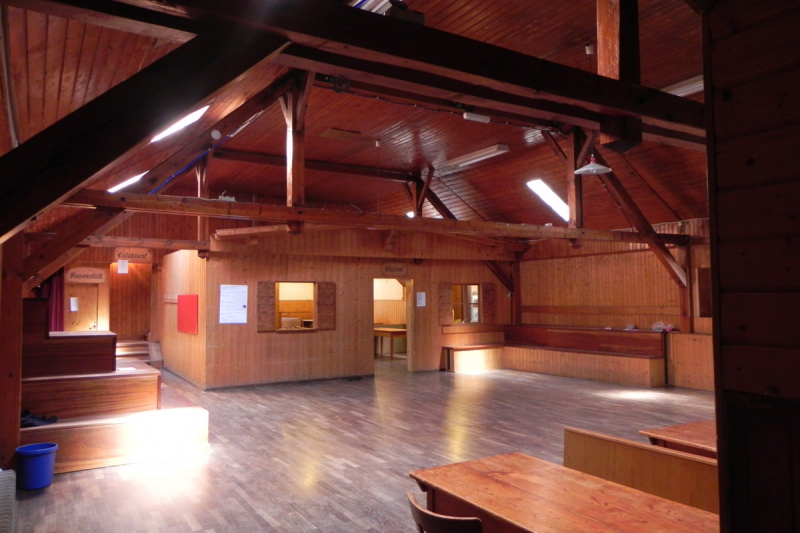 Im Gruppenhaus gibt es einen Partyraum und einen rustikalen Spiel- und Aufenthaltsraum von 170 qm mit Theaterbühne.