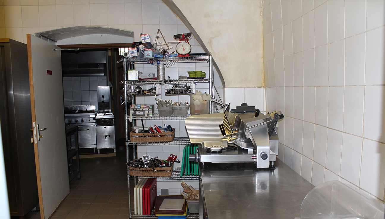 Im Erdgeschoss findet man die große Eingangshalle, einen weiträumigen Speisesaal mit Gewölbedecken, Sanitäreinrichtungen (Männer, Frauen und Behinderte), einen Schlafraum (8 Personen), der auch für Rollstuhlfahrer zugänglich ist, sowie ein