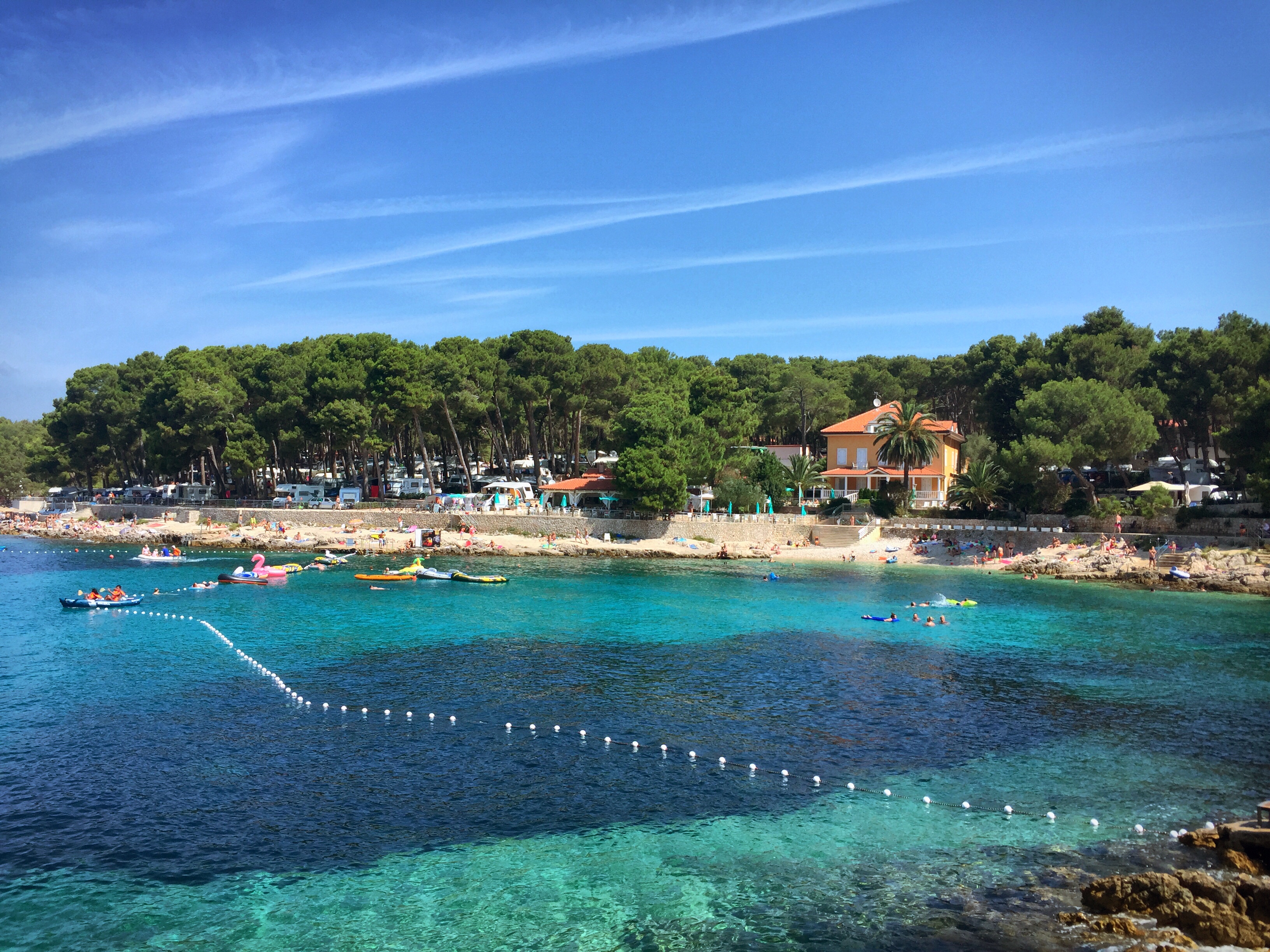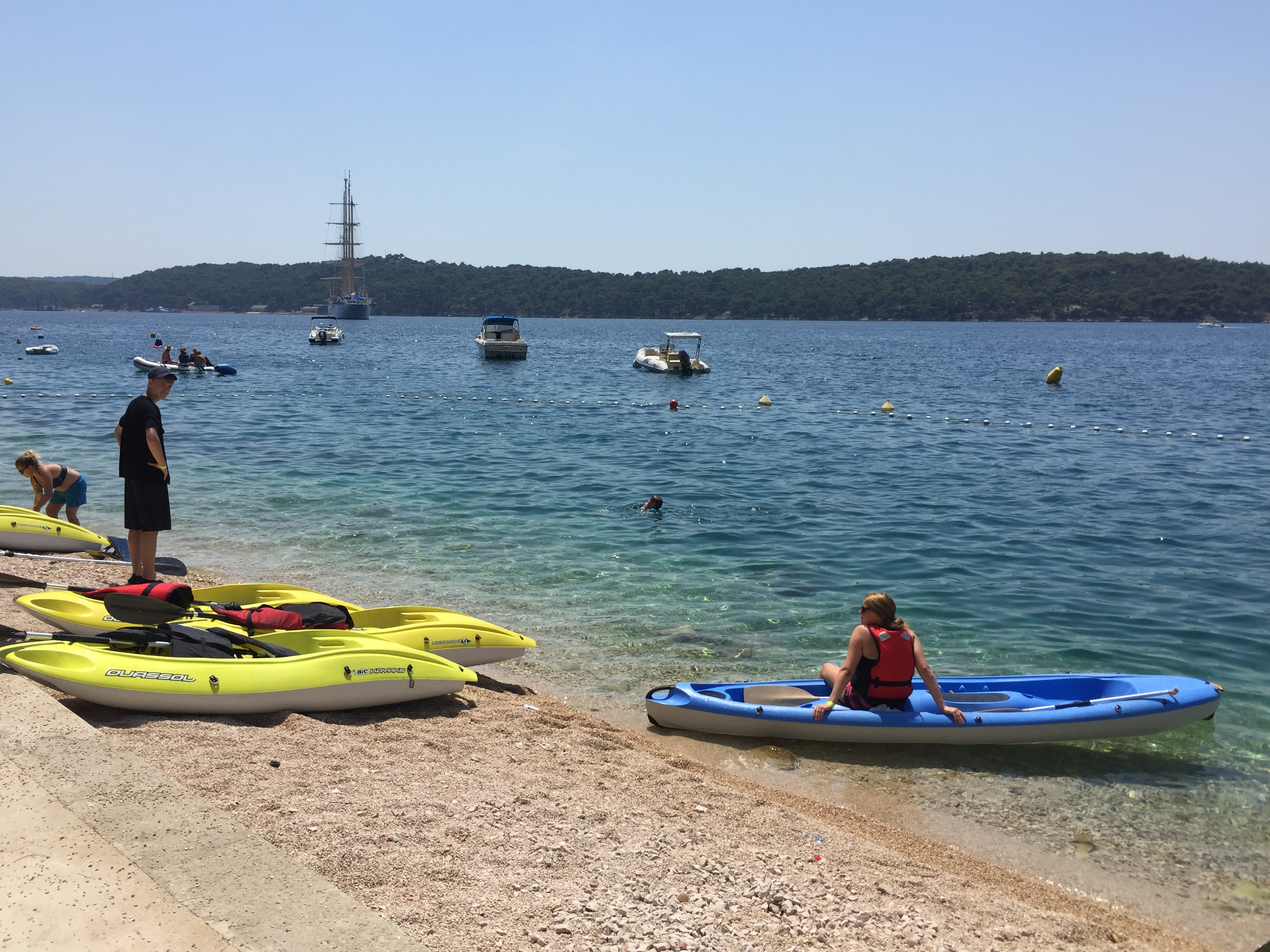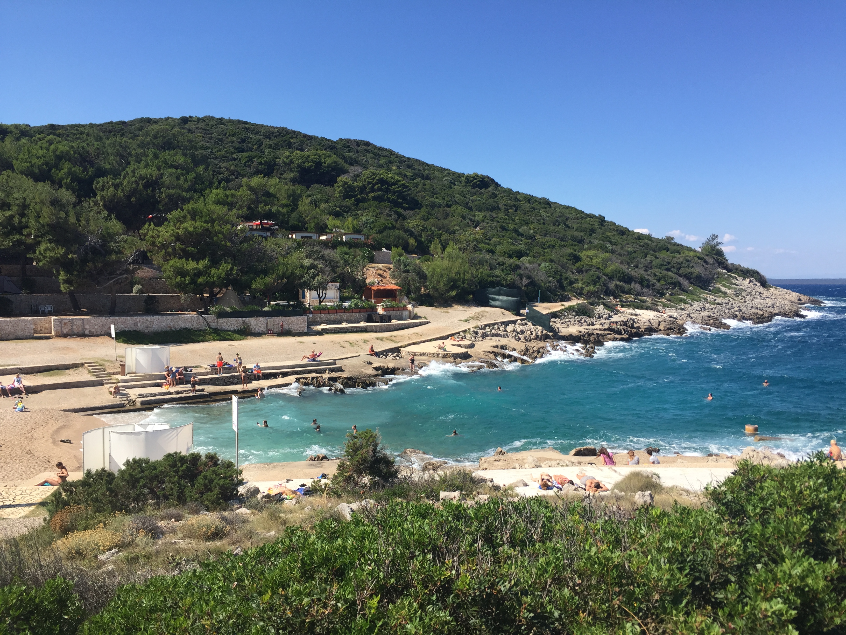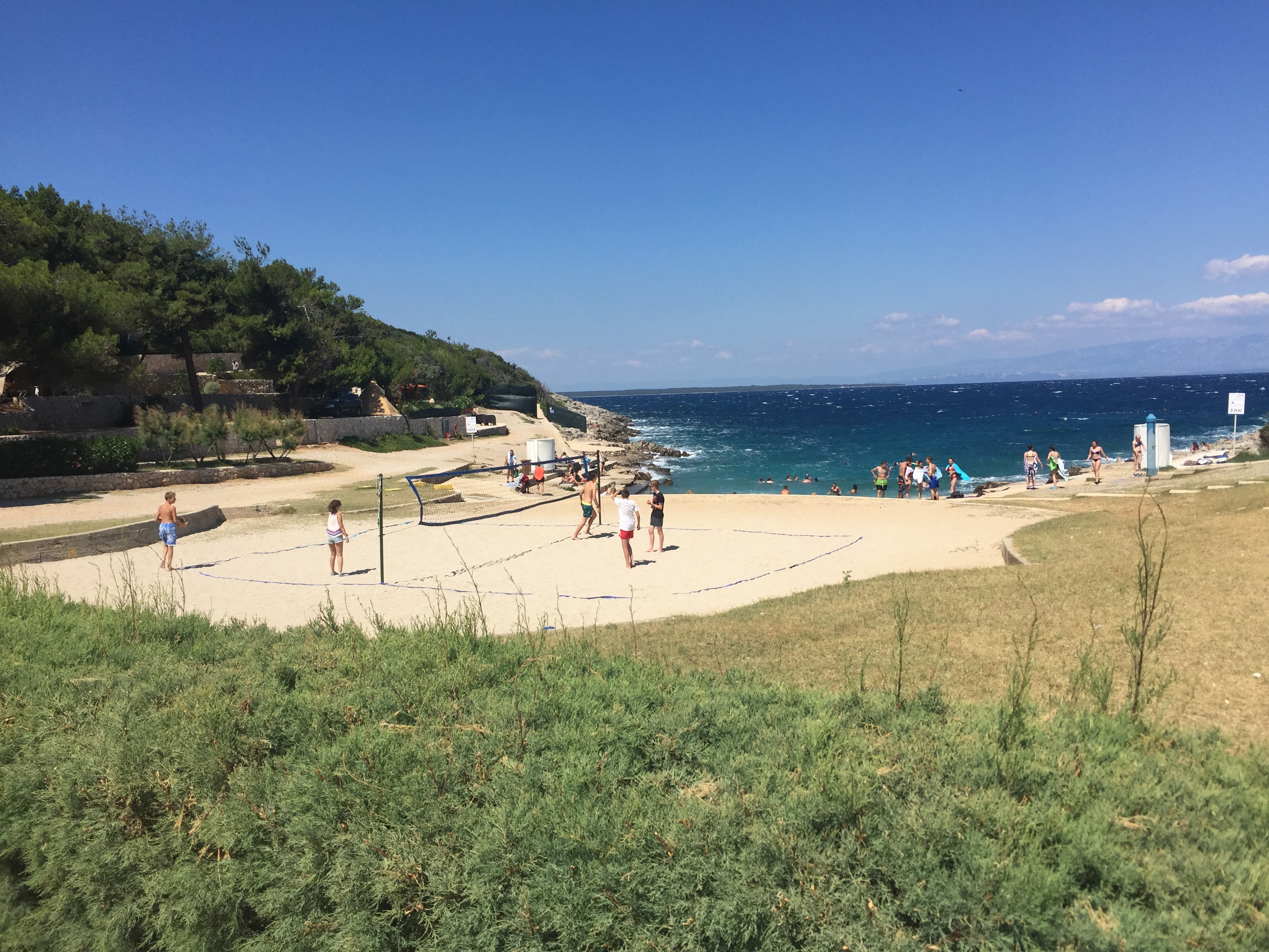 Direkt am Platz befindet sich der Strand, welcher mit der "blauen Flagge" ausgezeichnet wurde und über eine Badeaufsicht verfügt. Es gibt Platz zum Liegen in der natürlichen Bucht oder typisch für Kroatien auf den Plattformen in den Felsen. Sonne tanken ist hier bestens möglich.